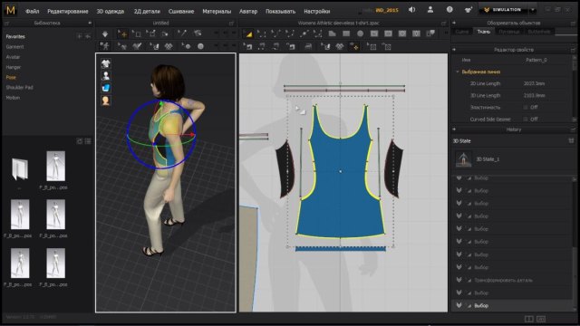 - Обеспечивает синхронизацию редактирования выкройки и трехмерной драпировки.