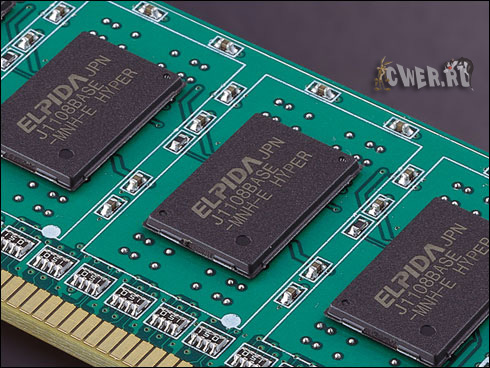Как сообщается, данная планка построена на базе DRAM-чипов Elpida J1108BASE-MNH-E HYPER, обладающих ёмкостью 1 Гбит и способных передавать данные на скорости до 2,5 Гбит/с. Примечательно и то, что в процессе создания этих микросхем при формировании проводящих слоёв вместо алюминия используется медь, что благотворно сказывается на повышении производительности изделий.
