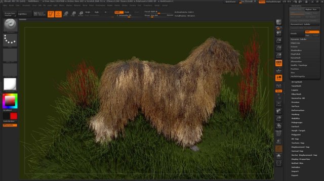 - Набор кистей для обработки меха и волос, настройки параметров кистей.
