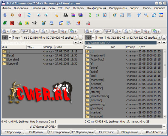 Кроме всех функциональностей, характерных для файловых менеджеров, в Total Commander встроены очень удобные просмотрщики для мультимедиа и графических файлов, распаковщики ZIP, ARJ, LZH, RAR, UC2, TAR, GZ, CAB, ACE и дополнительные dll для других архивных файлов; встроенный ftp-клиент - вообще просто прелесть: можно скачивать/закачивать файлы в несколько потоков, есть докачка, поддержка www-прокси при работе с ftp и есть даже такая функция, как подключение-скачивание-отключение в заданное время к заданному ftp. Не будут лишними и такие функции, как UUE/MIME/XXE кодирование/декодирование и разрезка/склейка длинных файлов, а также множество других функций, крайне необходимых для работы с файлами.