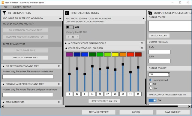 Automata - программа для автоматизации процесса и одновременного выполнения множества операций с изображениями: исправление цветового баланса, экспозиции, резкости и контраста, устранения зашумлений, изменения формата, размера, ориентации и многое другое. Программа работает в фоновом режиме и делает этот процесс простым и легким.