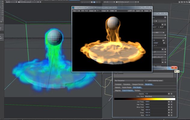 - В процессе моделирования для каждого кадра создается и кэшируется сетка вокселей, которая используется для объемного рендеринга.