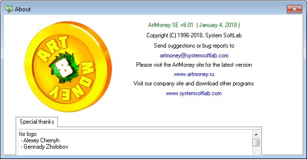ArtMoney - программа для редактирования параметров компьютерных игр, отвечающих за получение бесконечных денег, жизней, патронов и прочих полезных вещей. Она умеет сканировать память или файлы игры для поиска каких-то определенных значений (деньги, ресурсы и т.д.). Скачав ArtMoney, вы значительно расширите свои возможности при прохождении любимых игр.