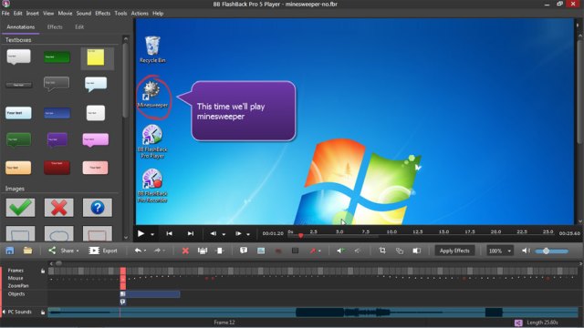 BB FlashBack - программа для создания видеоуроков, различных мануалов, презентаций и т.д, поможет записать все, что происходит на рабочем столе в файл Flash, AVI, WMV, EXE или PowerPoint, добавив свои комментарии или музыку. А встроенный редактор позволит отредактировать ваш "фильм" после записи и просмотреть в плеере. Полученное видео можно снабжать текстами, картинками и звуками, а также отдельно записать комментарий, а потом добавить его к ролику.