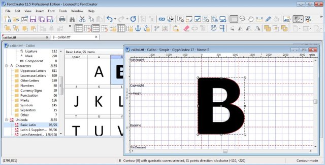 FontCreator - профессиональный редактор шрифтов, позволяет создавать и редактировать шрифты TrueType и OpenType. Имеет в арсенале мощные инструменты рисования, которые так необходимы для типографов и графических дизайнеров. Интуитивно понятный интерфейс, позволяет новичкам сразу стать продуктивными.