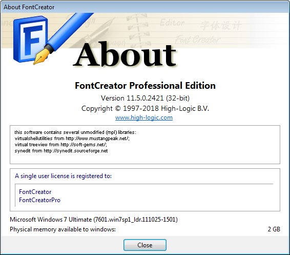 Скачать программу High-Logic FontCreator Professional 11.5.0.2421 (34,61 МБ):