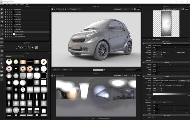 HDR Light Studio - программа для моделирования и имитации освещения реальных студийных источников света (софтбоксы, флюоресцентный свет и др.), позволяет размещать виртуальное студийное освещение и эффекты вокруг объекта для достижения идеальных отражений. Имеет широкие возможности в настройке и оптимизации, повышая возможности 3D-художников. Полученный проект может быть использован с любой другой программе рендеринга.