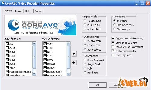 CoreAVC - это H.264 видео декодер, созданный, базируется на MPEG-4 стандарте, который используется в Blu-ray и High Definition DVD (HD-DVD). Данный декодер считается одним из лучших в мире H.264 видео декодеров. Эффективность CoreAVC заключается в программном подходе к декодированию, он не полагается на аппаратные средсва ПК для увеличения производительности при воспроизведении H.264 видео в отличии от других решений подобного рода. Самый поразительный вывод - декодер CoreAVC, не имеющий аппартной поддержки обогнал по производителтьности собратьев от Cyberlink и NVIDIA, такую имеющих. В последних версиях поддержка деинтерлейсинга осуществляется на программном уровне.