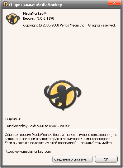 Скачать MediaMonkey Gold v3.0.6.1190 Final + русификатор (7,44 МБ):