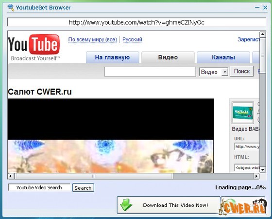 Программа имеет свой браузер и интуитивно понятную качалку.