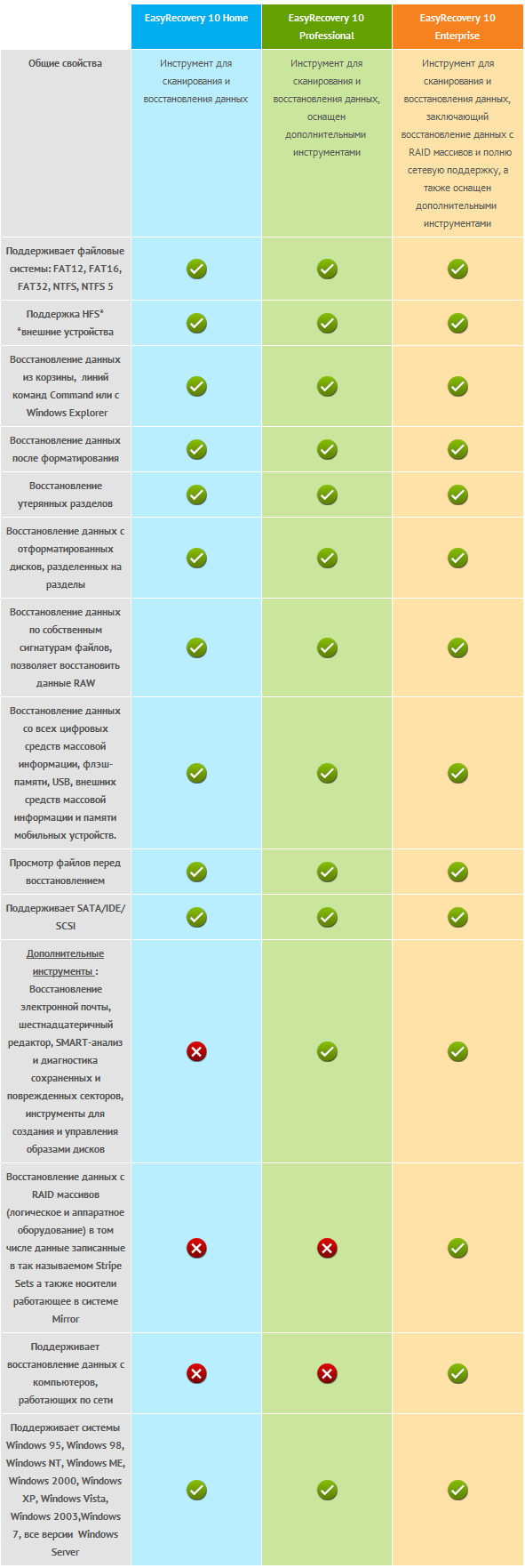 - Поддерживает системы: Microsoft® Windows 95, Microsoft Windows 98, Microsoft Windows NT, Microsoft Windows ME, Microsoft Windows 2000, Microsoft Windows XP, Microsoft Windows Vista, Microsoft Windows 2003, Microsoft Windows 7, все версии программного обеспечения Microsoft Windows Server (касается версии Ontrack® EasyRecovery™ для Windows)