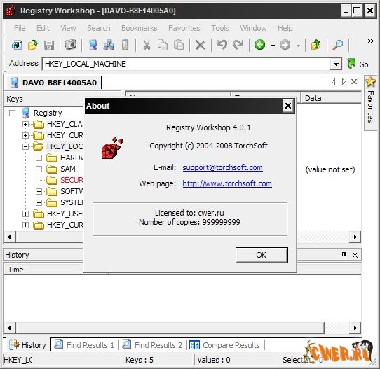 Скачать Torchsoft Registry Workshop 4.0.1 (1,11 МБ):
