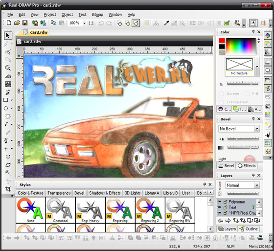 Real-DRAW Pro - графический редактор, ориентированный на одновременное использование векторной, 2D, 3D и растровой графики. Real-DRAW Pro включает большой набор стандартных текстур, масок и цветовых картин. Также в библиотеке находится большое количество графических объектов, отсортированных по тематикам, которые могут пригодиться при оформлении веб-страниц (в основном это оригинальные иконки и инструменты навигации). Полный пакет редактирования и преобразования одного формата в другой. Создает очень реалистичные изображения. Используя векторные инструментальные средства сцена получается очень естественной и трехмерной !!! - хотя создана по принципах двухмерности ... Real-DRAW Очень любопытная графическая программа ... Фактически нет никаких пределов в смысле ее использования ... коррекция, ретуширование, ... короче рамки может поставить тока ваше воображение ... Ко всему - объединяет в себе различные творческие подходы ...