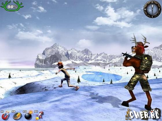 И снова с нами гроза охотников и фермеров олень-мститель Бембо. Его имя сложилось из двух известных имен: олененка Бемби и супер-героя Рембо. Долго ли еще смогут прожить браконьеры и туристы, населяющие леса по всему миру? Нет! Они умрут уже сегодня, ведь у Бембо в копытах больше 10 видов оружия, начиная от обычного индейского лука до самой настоящей базуки. Что не сделаешь, что бы наказать мерзких людишек...
