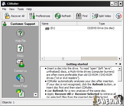 CD Roller - это программа, которая делает нечитабельные диски рабочими. Основное происхождение таких CD - повреждение, неправильно записанная сессия с мультисессионного CD, финалайзинг, выполненный с ошибками. Основной особенностью действия программы CD Roller является прямое обращение к аппаратной части привода в обход существующих приложений Windows. Благодаря низкоуровневым методам и алгоритмам CD Roller может читать данные, которые в обычном варианте воспринимаются как испорченный фрагмент и/или потерю данных. Как один из вариантов таких алгоритмов - изменение скорости вращения CD-ROM-диска.