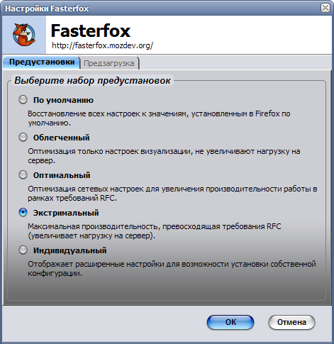 [/collapse] - Fasterfox - это расширение Firefox, ускоряющее загрузку веб-страниц браузером.