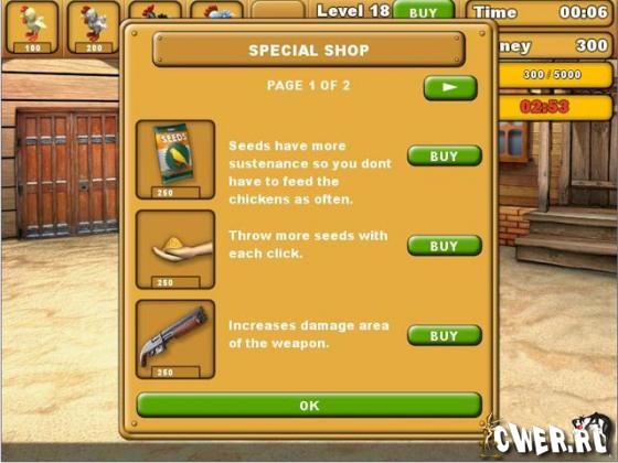 Помогите курицам спасти семейную ферму, которая находится на грани разорения! Выполнив ряд миссий, Вы сможете заработать достаточно денег, чтобы привести свою ферму в порядок. Докажите, что Вы сможете позаботиться о своем потомстве, выседеть яйца, отразить врагов и многое другое. Тратьте свои деньги с умом, приобретая полезные приспособления. Поработав как следует, Вы обязательно сможете помочь бедным хозяевам!