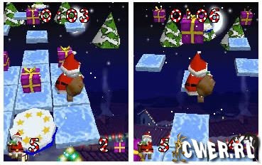 Санта Клаус тоже не отказался бы от такого удовольствия, да вот только обязанности гонят его на мороз. Чтобы порадовать каждого ребенка подарком, он мужественно перемещается по двигающимся платформам в сумеречном небе над красивым городом в праздничном убранстве и совсем не боится упасть вниз и разбиться. Санта знает, что творит благое дело, и это придает ему сил и смелости. В благородной миссии ему помогут и бодрящие рождественские мелодии, а также сказочная зимняя обстановка с завораживающе падающим снежком. Настоящее трехмерное рождественское приключение!