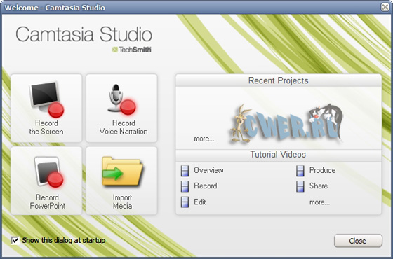 Camtasia Studio включает в себя четыре утилиты: Camtasia MenuMaker, Camtasia Player, Camtasia Theater и Camtasia Recorder. Для работы со всеми этими утилитами служит главный интерфейс программы.
