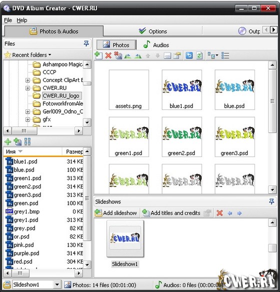 DVD Album Creator - программа предоставляет вам возможность создания слайд-шоу из ваших фотографий для последующего просмотра на DVD. Программа оснащена встроенным инструментом для записи созданных слайд-шоу на диски для просмотра на вашем телевизоре, проекторе и других устройствах. С помощью этой программы вы сможете наполнить свои слайд-шоу не только фотографиями, но и обогатить их различными эффектами переходов и наложить в качестве фонового звука различные аудио файлы, например, с вашей любимой композицией или мелодией. В каждом слайд-шоу фотографии делятся на главы, так же как сцены фильма в меню на DVD, для удобной навигации по вашему слайд-шоу с помощью пульта дистанционного управления. Программа также поддерживает до 8 установленных субтитров, используя EXIF или IPTC данные ваших цифровых фотографий.