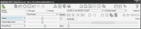 Программа для создания красивых текстовых эффектов и титров, применяемых при DVD-авторинге, а также трехмерной мультипликации. Результат можно просматривать в реальном времени с экспортом в картинку, видео формат. Мультипликации построены из слоев, которые могут отделяться независимо. BluffTitler поддерживает множество различных типов слоев: камера, свет, текст, картинка, видео, плазма, частица, аудио и т.д. Слои могут быть связаны друг с другом для создания специальных эффектов.