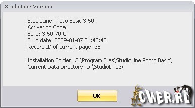После 30 дней использования StudioLine Photo Basic требуется бесплатная активация, если Вам лень заниматься активацией на свое имя, то можете воспользоваться следующим ключом: