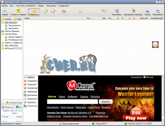 Скачать BitComet 1.08 (5,2 МБ):