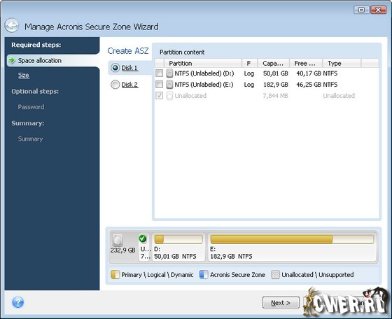 • Резервное копирование разделов и целых дисков по запатентованной технологии Acronis — создание точного образа диска (раздела), который содержит все данные, содержащиеся на жестком диске пользователя, в том числе: операционную систему, реестр Windows, драйверы устройств, приложения и данные, а также служебные области диска, скрытые от пользователя;