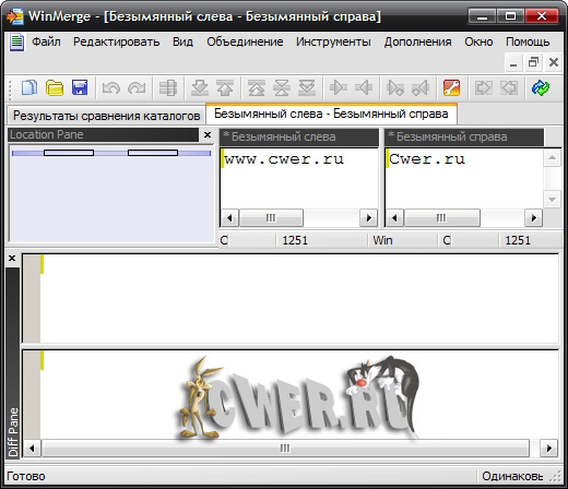 WinMerge - программа для визуального сравнения текстовых документов в Windows на предмет изменений в них. WinMerge умеет работать с DOS, UNIX и MAC форматами файлов, поддерживает Unicode и имеет подсветку синтаксиса. Может оказаться очень полезной, например, для определения того, что изменилось в одной версии проекта по сравнению с другой, а также для слияния изменений, выполненных в различных версиях. Кроме того, есть специальная панель для навигации по документу, при помощи которой можно быстро перемещаться к тем фрагментам файла, где есть отличия. Сравнение файлов можно выполнять с учетом регулярных выражений.