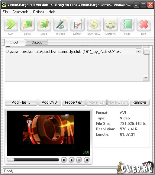 VideoCharge Full - программа, обладающая множеством возможностей, которые позволяют совершать любые операции с видео файлами за несколько кликов мыши. Программа может быть использована для разрезки видео и аудио файлов на несколько частей, объединения нескольких файлов в один большой медиа файл, извлечения или удаления сцен в видео роликах, создания эскизов изображений из видео файлов, добавления водяных знаков на видео и графические файлы, пакетной обработки нескольких изображений и многого другого. Кроме того, утилита позволяет обрабатывать на лету видео файлы (без декомпрессии и последовательного сжатия каждого кадра), имеет поддержку работы через командную строку, а также включает в себя встроенный FTP клиент для публикации готовых файлов в сети. Программа оптимизирована для обработки большого объема файлов и поддерживает большинство популярных видео и графических форматов.