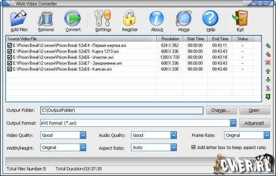 Allok Video Converter является инструментом конвертирования видеофайлов все в одном, который может конвертировать практическм во все известные видеоформаты AVI, DivХ, XviD, MPEG, WMV, ASF, RM, RMVB, MOV, MP4, 3GP, FLV, MKV, MOD и т.д. Программа включает в себя мощный внутренний двигатель преобразования , что позволяет преобразовывать медиа файлы с очень быстрой скоростью и отличным качеством видео. Allok Video Converter может конвертировать видео файлы в форматы которые можно смотреть по телевизору, ставить на сайт, создавать презентации, смотреть на ваших IPod, iPhone, Apple TV, Xbox, Archos и многом другом. Имеет простой графический интерфейс и очень прост в использовании.