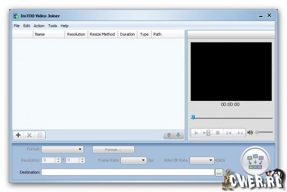 ImTOO Video Editor соединяет, обрезает и разделяет различные типы видеофайлов. Программа поддерживает 3GPP и 3GPP2, AVI, файлы Macromedia Flash, QuickTime, MPEG4, RAW h264, файлы Windows Media и MPEG. Утилиту просто установить и использовать. При запуске открывается окно приложения с тремя кнопками. В зависимости от выполняемой задачи необходимо нажать на одну из них: Join (Соединить), Split (Разбить), Cut (Обрезать).