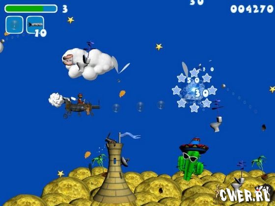 Приключения смелого авиатора состоят из шести эпизодов, в конце каждого из них пилот должен сразиться с беспощадным и сильным главарем уровня. К счастью, в небесах полным-полно бонусов, внутри которых можно найти более мощные снаряды для орудий или другие полезные подарочки.