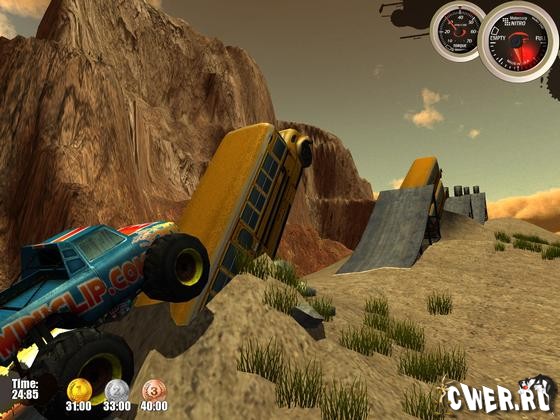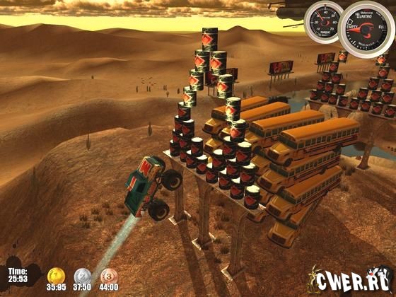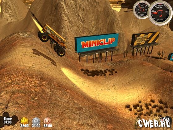 Внедорожные монстры покоряют высоту мертвых петель, перепрыгивают через пропасти, катаются сквозь трубы и выполняют другие сумасшедшие трюки. Одним словом, делают всё то, за что в реальной жизни отбирают права. В игре отличная графика, реалистичная физика, несколько десятков трасс, а также 5 внедорожников, включая 3 секретных.