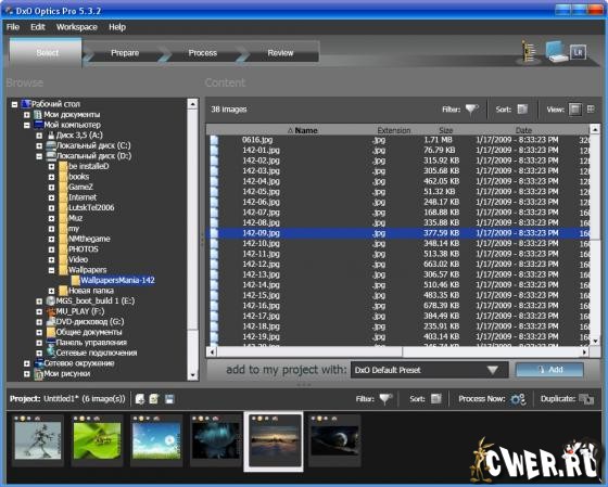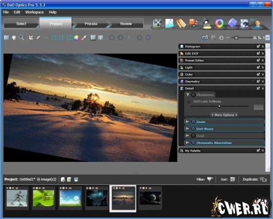 Вся работа DxO Optics Pro напоминает работу RAW-конверторов. И это неудивительно, ведь основное применение DxO Optics и заключается в обработке цифровых негативов. Любопытно отметить, что изначально программа разрабатывалась для корректировки геометрических искажений оптики. Затем в продукт добавились компоненты исправления других недостатков оптики. Вскоре появились средства поддержки RAW современных фотокамер и базовые инструменты систематизации материала. А там, где RAW не обойтись без управления экспозицией и цветом. В результате из, в общем-то, простой утилиты для исправления различных дисторсий, DxO Optics вырос в мощный программный продукт, позволяющий выполнять широкий комплекс корректировок изображений.