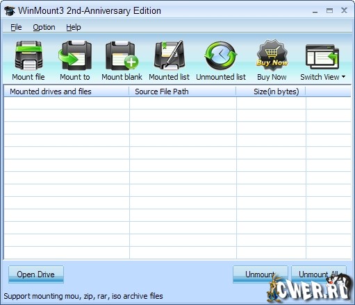 WinMount - программа, предназначенная для создания виртуальных дисков в вашей системе из любого архива или файл-образа. Это удобно, так как можно работать с файлами в архиве без необходимости непосредственного извлечения файлов во временную папку. Утилита поддерживает работу практически со всеми форматами файлов-образов: ISO, CUE/BIN, CCD,BWT, MDS, CDI, NRG, PDI B5T и ISZ, а также с архивами ZIP и RAR. Среди дополнительных возможностей программы можно отметить поддержку аварийно-спасательных дисков от Norton Ghost и технологии виртуализации VMWare. Программа имеет приятный пользователький интерфейс.