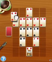 Игра для мобильных телефонов. Третье место между домом и работой - это кафе, где можно в спокойной обстановке разложить пасьянс. Так думают разработчики этой игры, которую можно отнести к разряду азартных. Пасьянс кафе, это не только игра - это и наивкуснейший кофе, который дарит божественный вкус, способствующий игре. Поэтому, предлагаю вам заварить чашечку, усесться поудобнее в кресле и разложить свой пасьянс... Размеры экранов: 240х320.