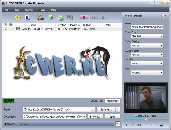 Скачать ImTOO MPEG Encoder Ultimate 5.1.22 Build 0305 (15,28 МБ):