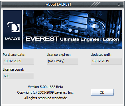 Скачать EVEREST Ultimate Engineer Edition v5.00.1683 Beta (9,8 МБ):