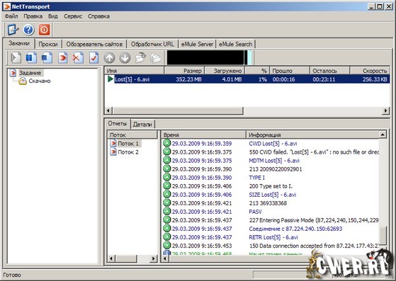 В единый пакет Net Transport входят стандартный FTP-клиент и добротный менеджер закачек. Обе утилиты просты в использовании и надежны. С помощью менеджера можно загрузить даже торрент-файлы.