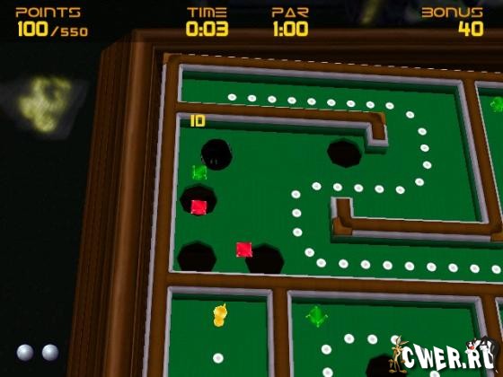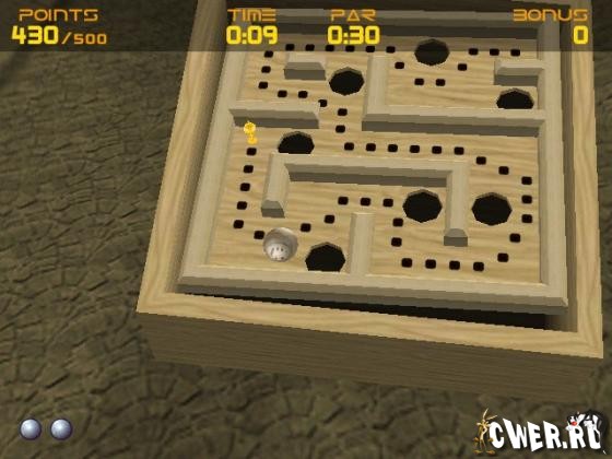 Классическая настольная игра, перенесённая в компьютерный век. Многим она наверняка знакома по телеигре "Ключи от форта Байярд". Задача играющего - управляя наклонами стола, провести шар из одной точки лабиринта в другую. Однако задача осложняется тем, что лабиринт наполнен дырами-ловушками. Проверьте своё чувство баланса, проводя шарик через лабиринт и не забывая собирать по пути различные бонусы, которые принесут вам дополнительные очки.