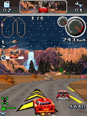 Этот симпатичный красный автомобильчик из фильма «Тачки» уже становился чемпионом. Но сейчас он хочет стать еще раз. И еще, и еще! Поэтому его друзья-машины из этого же фильма решили устроить гонки. Чтобы все было по-честному и чтобы все игроки смогли прокатиться на каждой понравившейся им тачке! Размеры экранов: 176x220, 240x320.