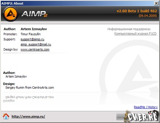 Что нового в AIMP v2.60 Beta 1 Build 462 от 09.04.2009: