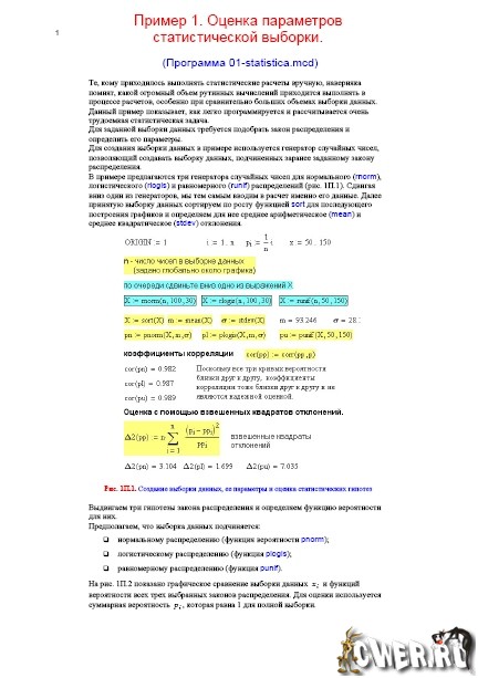 В электронную книгу «Расчеты в Mathcad» входит около 100 файлов, содержащих подробные сведения обо всех возможностях Mathcad, что облегчит работу с программой. Данная электронная книга позволяет многократно ускорить создание собственных программ путем сборки фрагментов уже готовых.