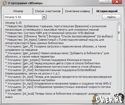 Winamp Full - один из старейших и популярнейших медиа-плееров. Программа позволяет работать с файлами в форматах MP3, OGG, AAC, WAV, MOD, XM, S3M, IT, MIDI и т.д., поддерживает воспроизведение видео (AVI, ASF, MPEG, NSV), имеет большое количество настроек и параметров, обладает возможностью смены скинов, имеет хороший модуль визуализации, медиа-библиотеку и многое другое!