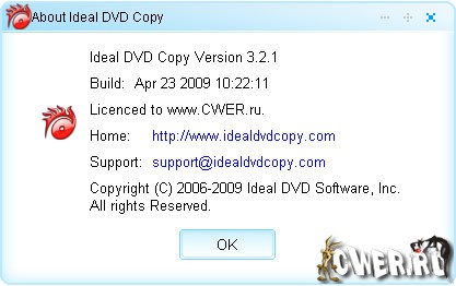 Ideal DVD Copy - простая и высокоскоростная программа для копирования DVD. Эта программа поможет вам скопировать любые DVD-диски, в том числе и защищенные (CSS, Region Code, Sony ARccOS, PuppetLock, UOPs, т.д.). Способна делать точные 1:1 копии DVD, и копировать DVD на жесткий диск и обратно. Кроме того программа может сжать DVD-9 до размеров обычного DVD-5 диска. Также программа поддерживает копирование основного фильма или эпизода, с возможностью удаления ненужных меню, трейлеров, аудио-потоков, субтитров.