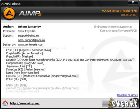 Скачать программу AIMP v2.60 Beta 1 Build 470 (4,62 МБ):