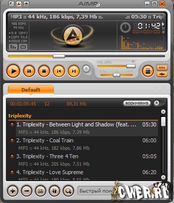 Программа, которая разрабатывалась как аналог всем известного медиаплеера Winamp. На данный момент программа включает в себя множество дополнительных модулей: CD-Ripper, Tag Editor, Audio-player, аудио конвертер, запись аудио и дисков с данными и многое другое. AIMP заменяет множество программ, благодаря чему теперь не нужно искать специальный софт, скажем, для перегона Audio-CD (CDA) в MP3 - это уже предусмотрено в AIMP. Программа позволяет воспроизводить без плагинов множество форматов, включая WAV, MP3, MP2, MP1, OGG, WMA, UMX и многие другие. Интерфейс программы выглядит очень стильно, а также имеет многоязычную поддержку, включая русский язык.