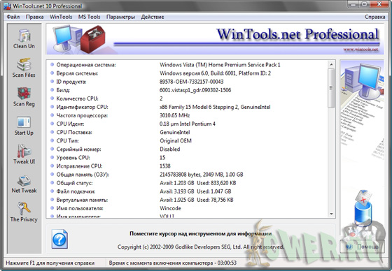 WinTools.net Professional – набор инструментов для оптимизации операционной системы Windows. В состав программы входят компоненты для полного удаления нежелательных программ и «мертвых» ссылок реестра, а также для контроля процессов, настройки системы, интернет-соединений и интерфейса. Кроме того, имеются утилиты для надежного хранения конфиденциальной информации. Работает на платформах Windows 2000, 2003, XP и Vista.