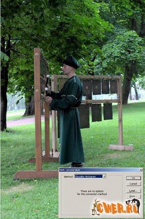 Здесь самое время сделать второе лирическое отступление об особенностях PHOTOSHOP . Дело в том, что дальнейшая работа с файлом весьма ограничена теми средствами, которые имеет редактор. Отсутствует встроенная гибкая, настраиваемая тональная компрессия, необходимая для создания реального файла, именно той HDR-ной картинки, которая для нас наиболее интересна. Мы можем всего лишь преобразовать этот файл в обычный 8-ми или 16-ти битный с последующей обработкой. Правда при самом преобразовании мы можем кое-что с ним сделать, хотя и очень немного. Давайте попробуем. Итак, Image – Mode – 8bit/channel .